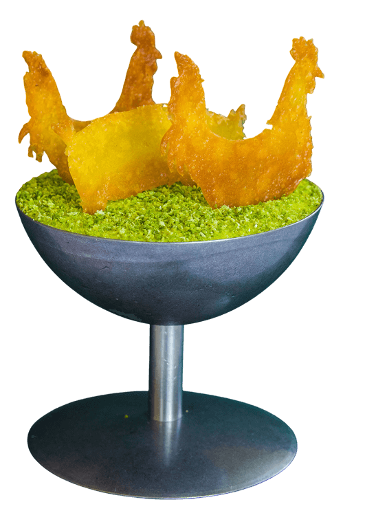 В 2025-м гостей удивляли горящим белым атомом имени Игоря Курчатова на десерт, съедобной березой на закуску, свекольным вареньем и кремом из ромашки.