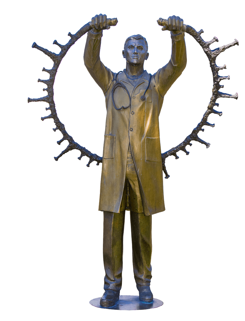 Челябинск — кузница высококвалифицированных медицинских кадров. Со времён Великой Отечественной войны здесь работает один из ведущих медицинских университетов страны. В уютном сквере, напротив входа в главный корпус, который расположен на улице Воровского, гостей встречает работа скульптора Вардкеса Авакяна — памятник врачу в начале 80-х годов создали на средства студентов-комсомольцев к открытию нового корпуса медуниверситета. Для собирательного образа задумчивого хирурга в шапочке и халате мастеру позировали несколько врачей.