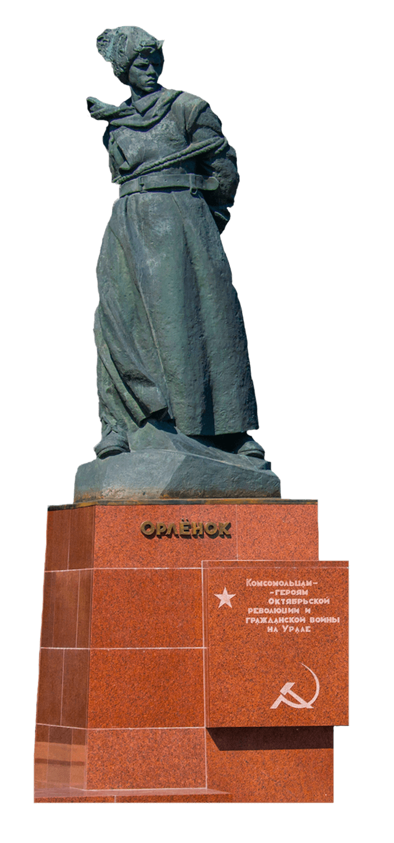 Памятник Орлёнку, пожалуй, один из самых ярких скульптурных образов в Челябинске. Несгибаемый мальчишка — герой из известной песни о гражданской войне, готовится взлететь выше солнца и озарить землю с небес. Установлен этот замечательный памятник на перекрестке проспекта Ленина и улицы Красной, у входа на Алое поле.